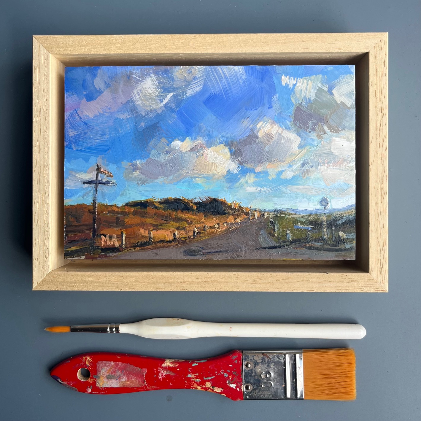 De weg naar het strand van Oosterend op Terschelling. Dit minischilderijtje wordt geleverd in een houten lijstje.