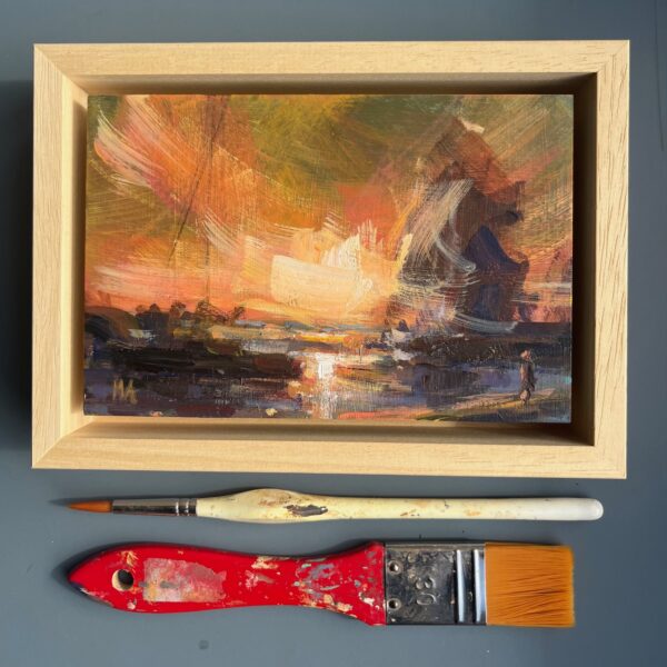 Had a lovely weekend with water fun on the Sneekermeer in Friesland. This mini painting comes in a wooden frame.