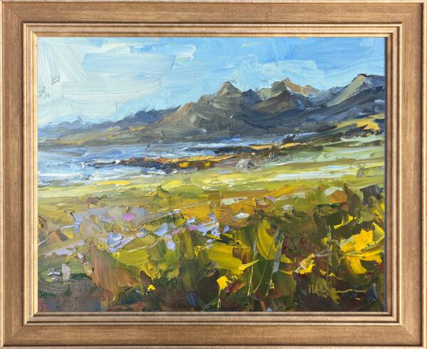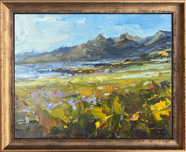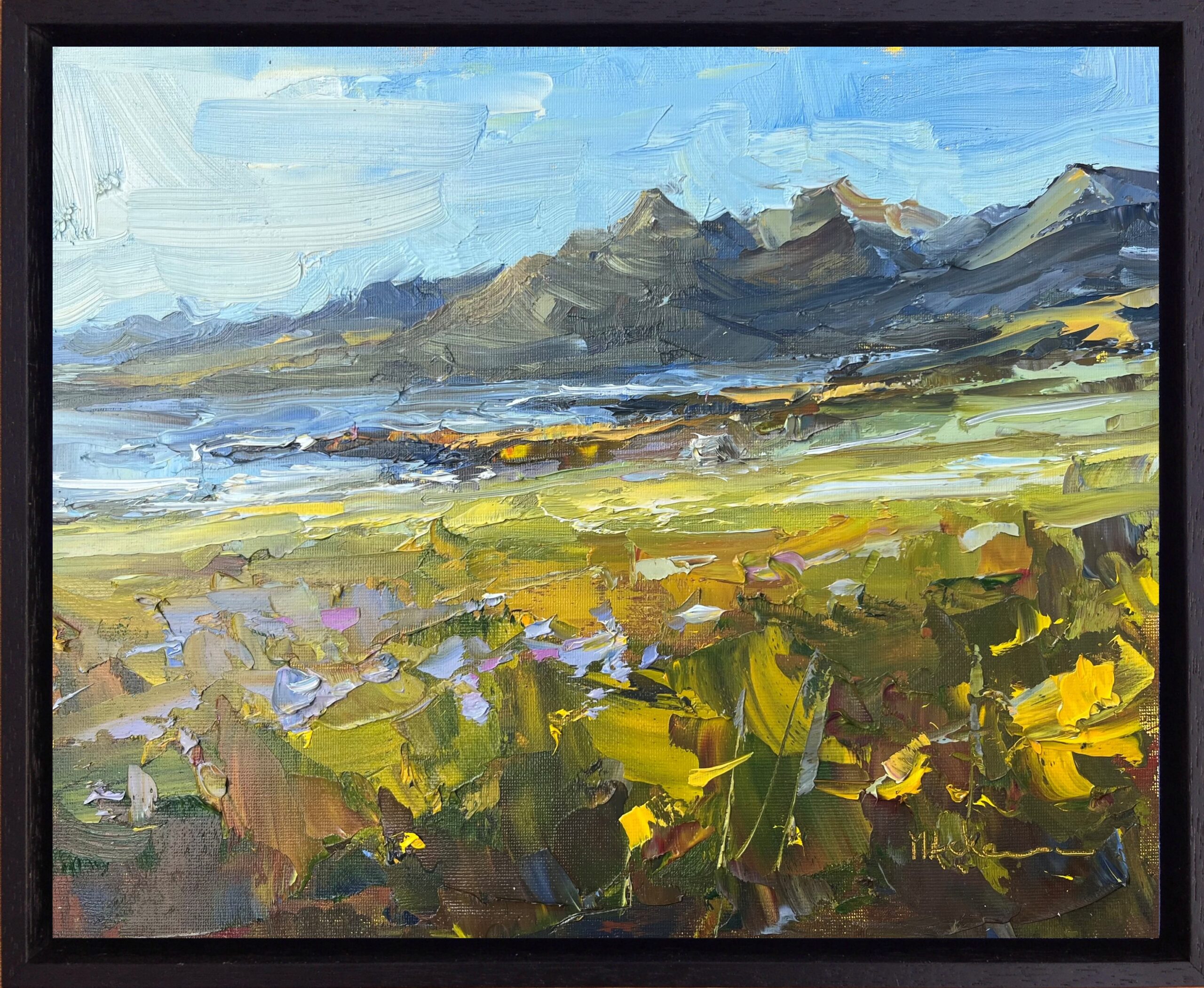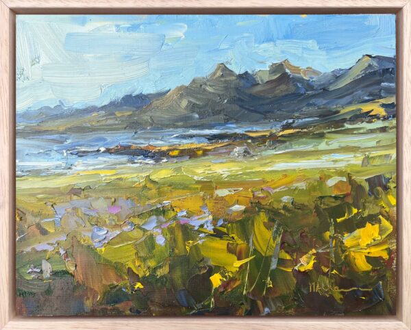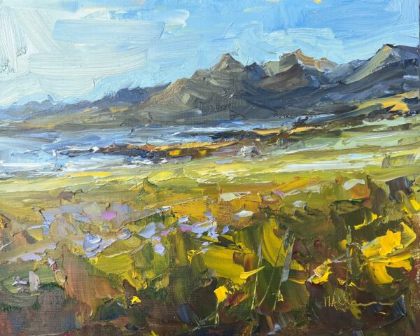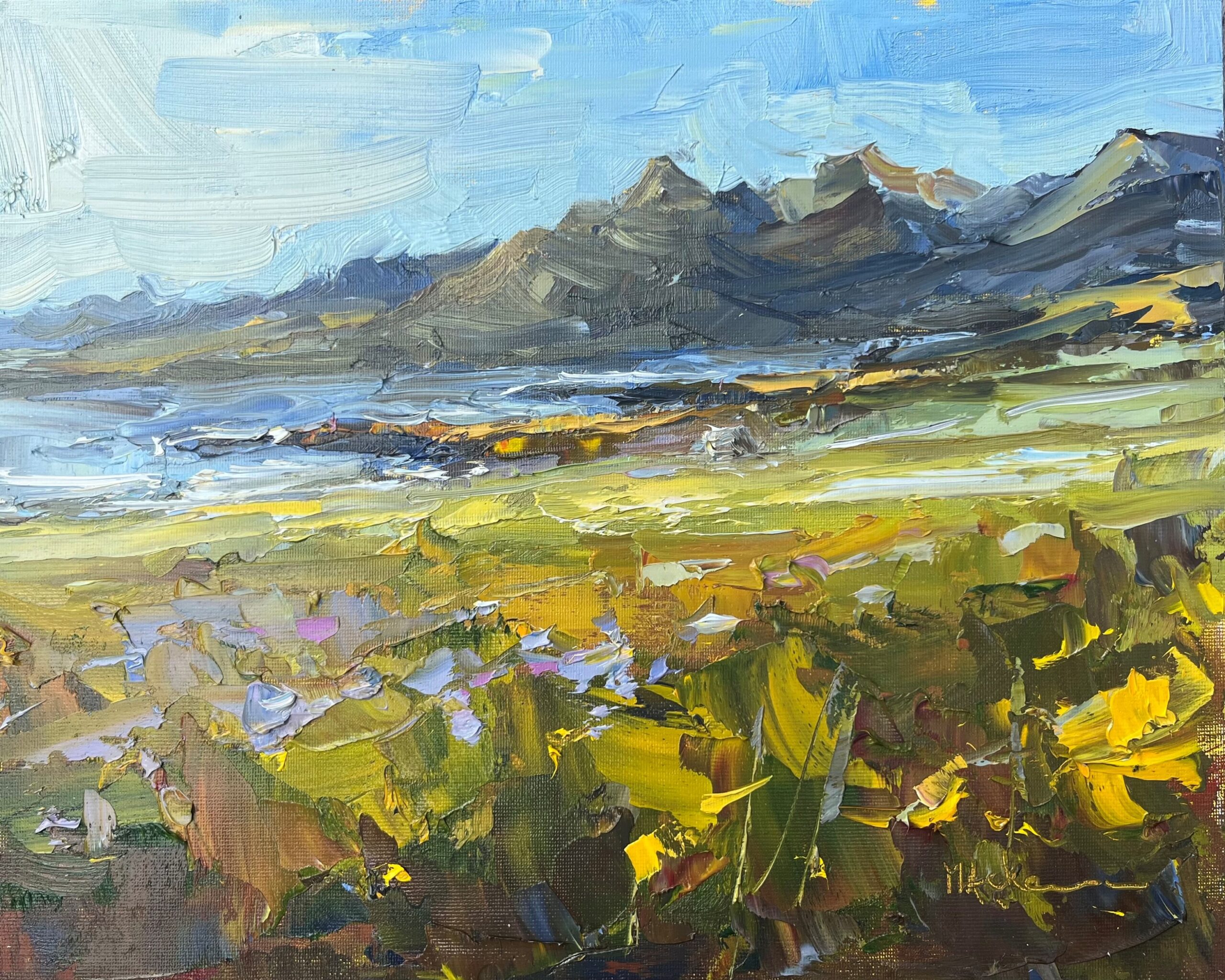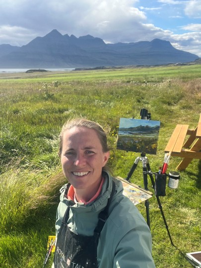 The first day in Iceland this summer was sunny. We were at a campsite with an amazing view. Since we were just going to chill at the campsite anyway, I had a great opportunity to paint. Mountains are quite different from beaches, meadows, or cows!